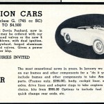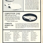 The most sensational news in years. In January (1957) we will start making delivery on our frames and other components for a “do it yourself sports car.” Kit’s to include frames and other components to take American engines and other parts, (frames only $295), body, cockpit liner, suspension, front and rear axles, drive lines and adaptor rings to take engines and transmissions of your choice.
