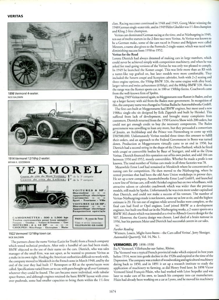 Further Reading: “Winners, Loosers, Might-have-beens – The Cars Called Veritas.” By Jerry Sloniger, Automobile Quarterly, Volume 14, Number 1.