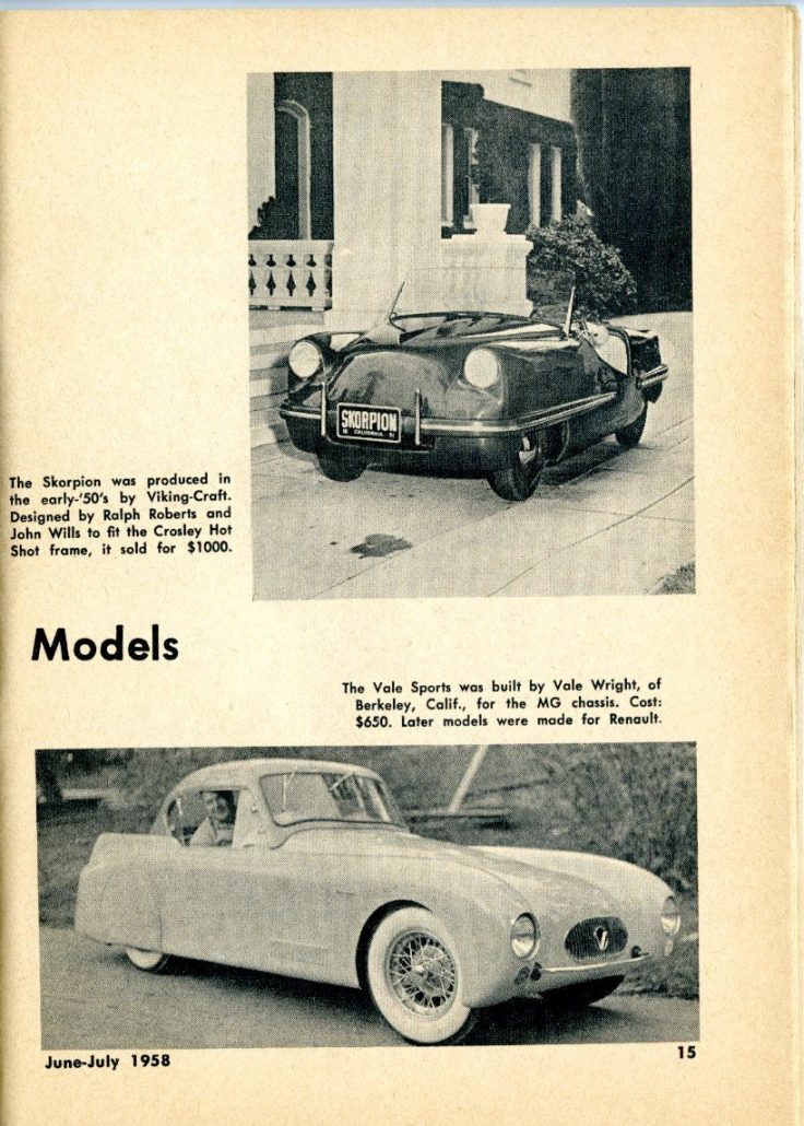 - Caption: The Vale Sports Was Built By Vale Wright, of Berkeley, California, For The MG Chassis. Cost: $650. Later Models Were Made For Renault.