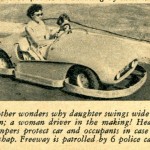 How ‘bout those “police cars” on the original track!  What fun that must have been to be one of the original “officers” patrolling Autopia and helping out.  I wonder how long this track and car configuration lasted before significant changes were made.  I bet one of the “Disney fans” out there can help us out 🙂   In the meantime, click on the link below to learn more about Disneyland’s Autopia ride: