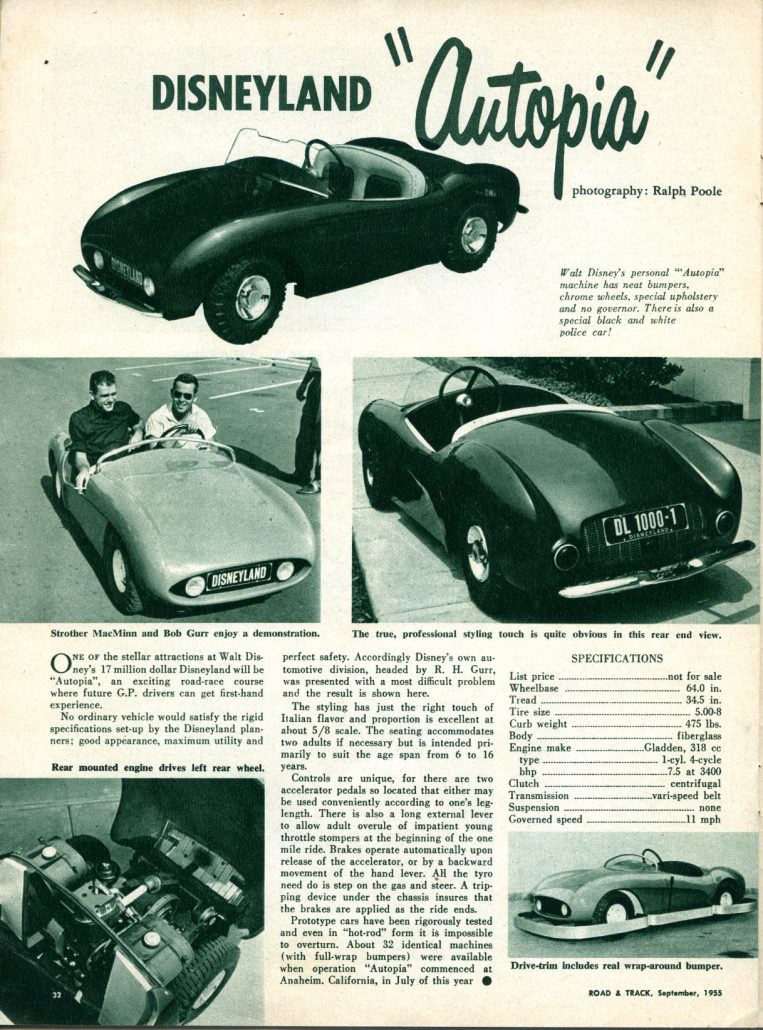 Let’s begin our first story on Autopia by reviewing an article which appeared in the September 1955 issue of Road & Track Magazine.