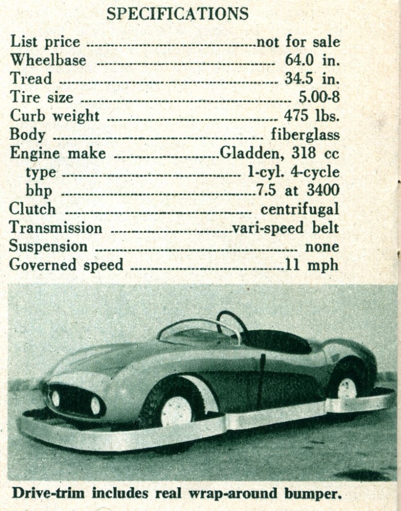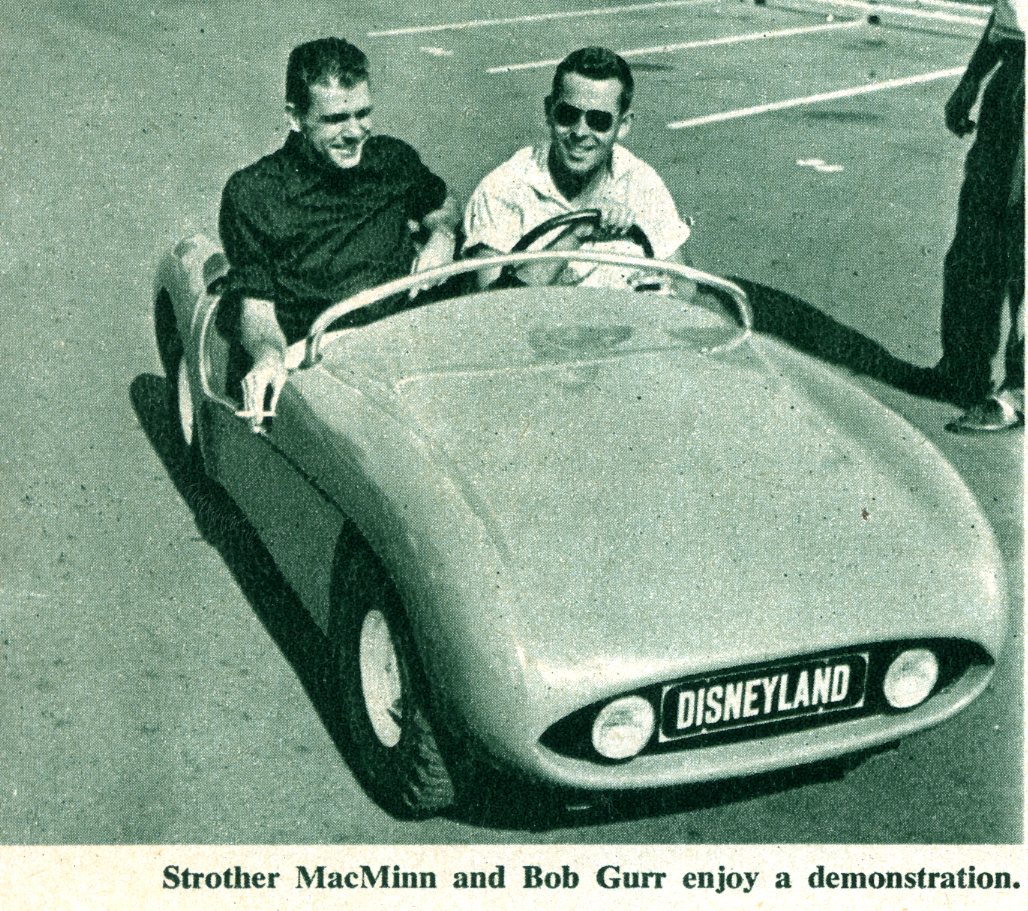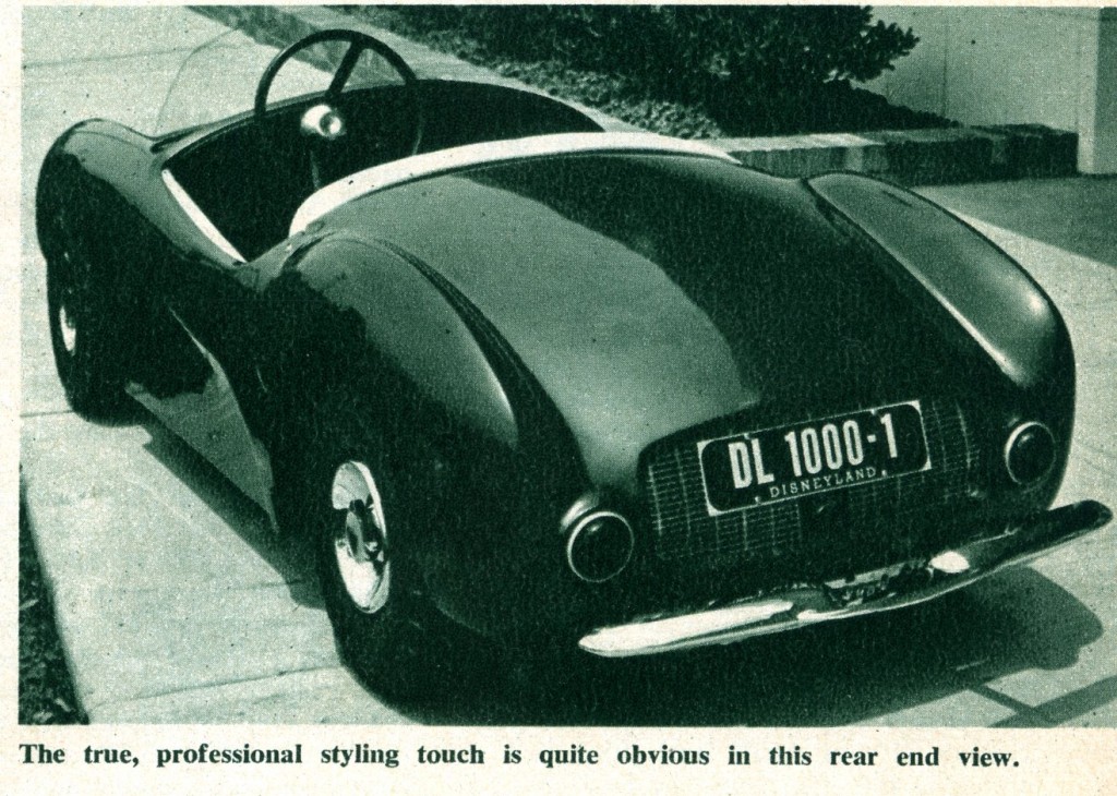 Prototype cars have been rigorously tested and even in “hot-rod” form it is impossible to overturn. About 32 identical machines (with full-wrap bumpers) were available when operation “Autopia” commenced at Anahem, California in July of this year.