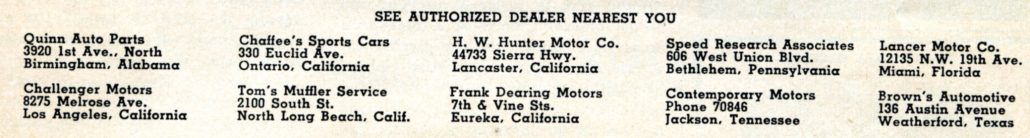 Bill Devin Already Had 10 Dealers in Place by Late 1956. Very Impressive Accomplishment! And One Dealer Was Near Where Good Friend Harold Pace (and Devin SS Owner) Lives Now. I Wonder How Many Devin Stories Lurk Around Weatherford, Texas?