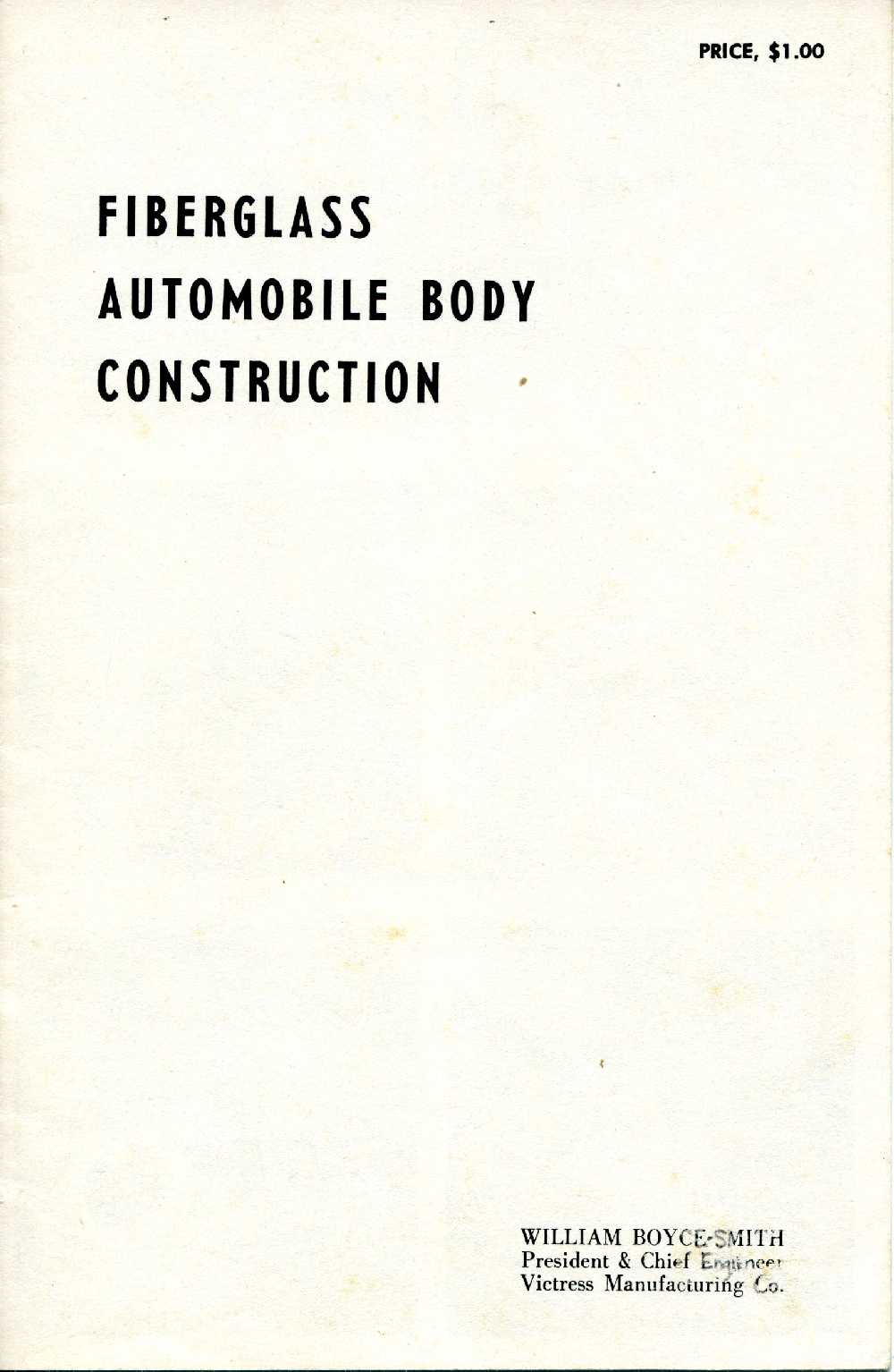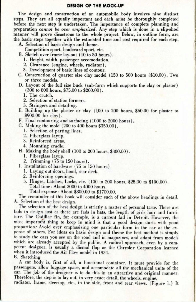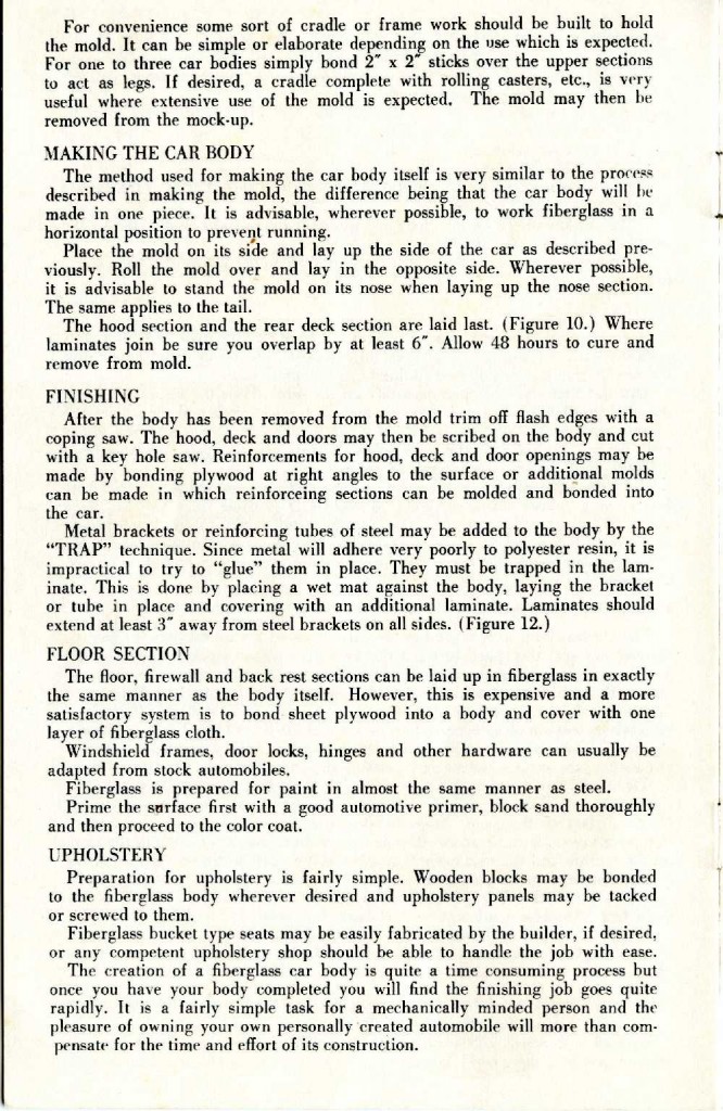 1. What a great booklet. Sixty years later, it is just as applicable today as it was then. A few fiberglass and associated materials have changed due to modern technology. If you want to build your own body, this booklet will guide you to a successful project.