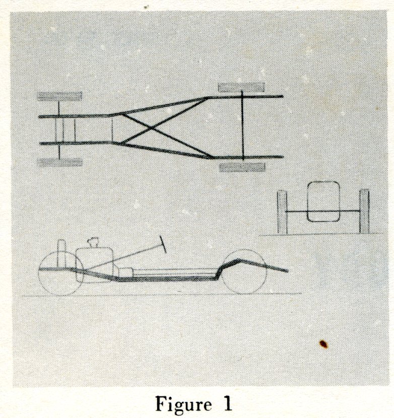 After this step is completed, with the greatest possible accuracy, onion skin or other semi-transparent paper may be laid over the chassis lay out and sketching of the proposed body begun.  Do not be afraid to use paper, the most sketches, the better.  Victress designers have made as many as 40 sketches before proceeding further.  If possible, when a promising profile has been developed, sketch it in three dimensions.