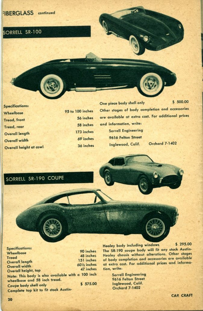 So…enjoy this segment of Car Craft’s 1956 Fiberglass Buyers Guide, and maybe one of you lucky guys or gals out there will find the car mentioned in today’s story – the long lost Sorrell SR-190 Coupe.