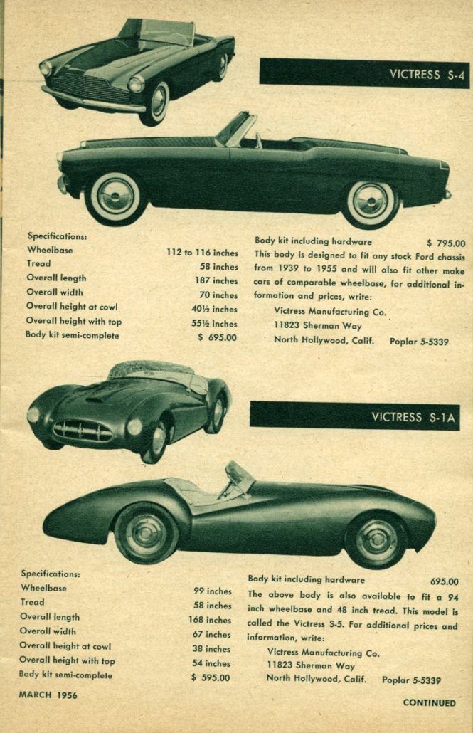 | Car Craft (March 1956) Victress S4 Sports Car Specifications |