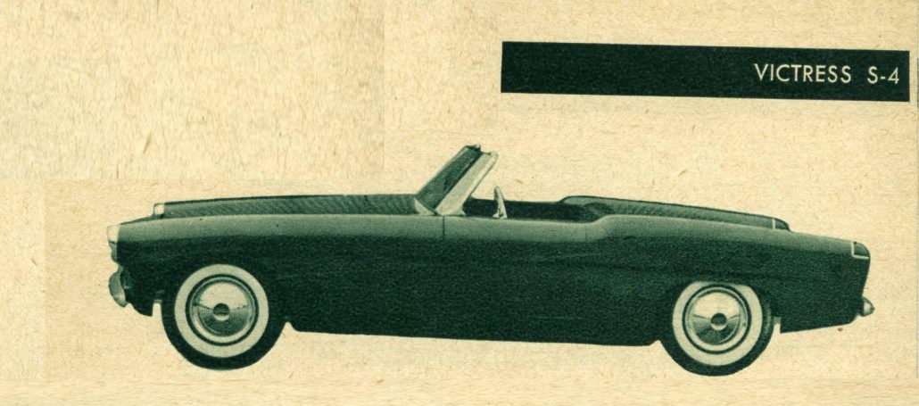 So…in 1954 the Victress S4 was launched. It was the lead car on Victress’ 1954 Brochure and more than one article appeared about the launching of this car and how to build one yourself. In 1955, Doc even put out two publications by Victress showcasing how to build a frame for your sports car and how to build a sports car from the ground up. Both featured Victress S4 sports cars.