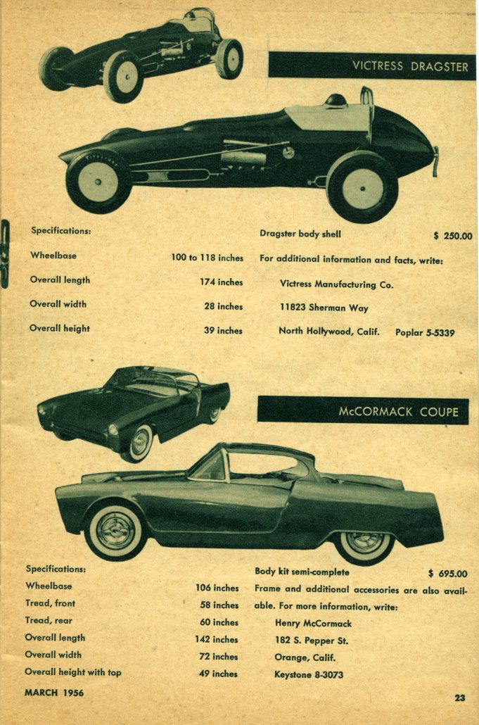 So…enjoy this segment of Car Craft’s 1956 Fiberglass Buyers Guide and be on the lookout for the next McCormack Coupe hiding out there. Just a few have been found, and your efforts could make you the next lucky owner. And you’d make the McCormack family very proud.