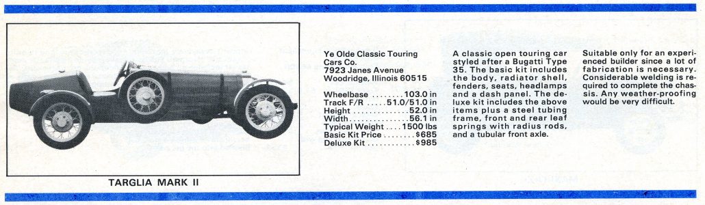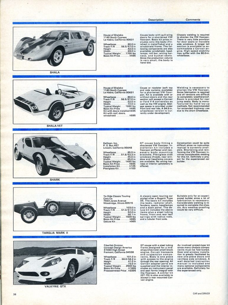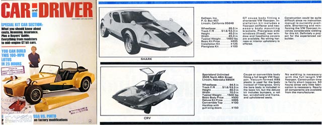 As Harold Pace promised, this article is definitely worth the read, and covers details of 18 sports cars kits that could be purchased including: