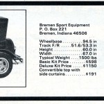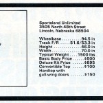 * The second half is a “Buyers Guide” showing all of the sports cars and “sporty” cars available at the time – excluding most Dune Buggies which were nearly at their zenith of popularity.  The pictures and their associated information in the “Buyers Guide” appear throughout the story.  Use your mouse and click on any of these pictures to make them larger and more easily readable.