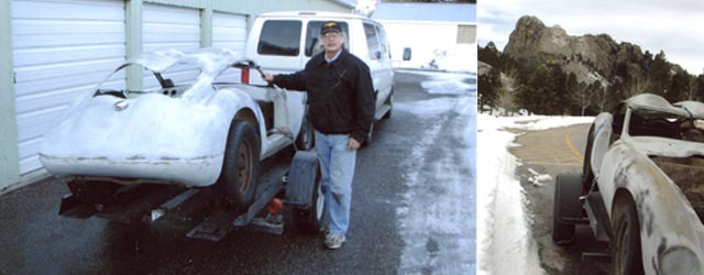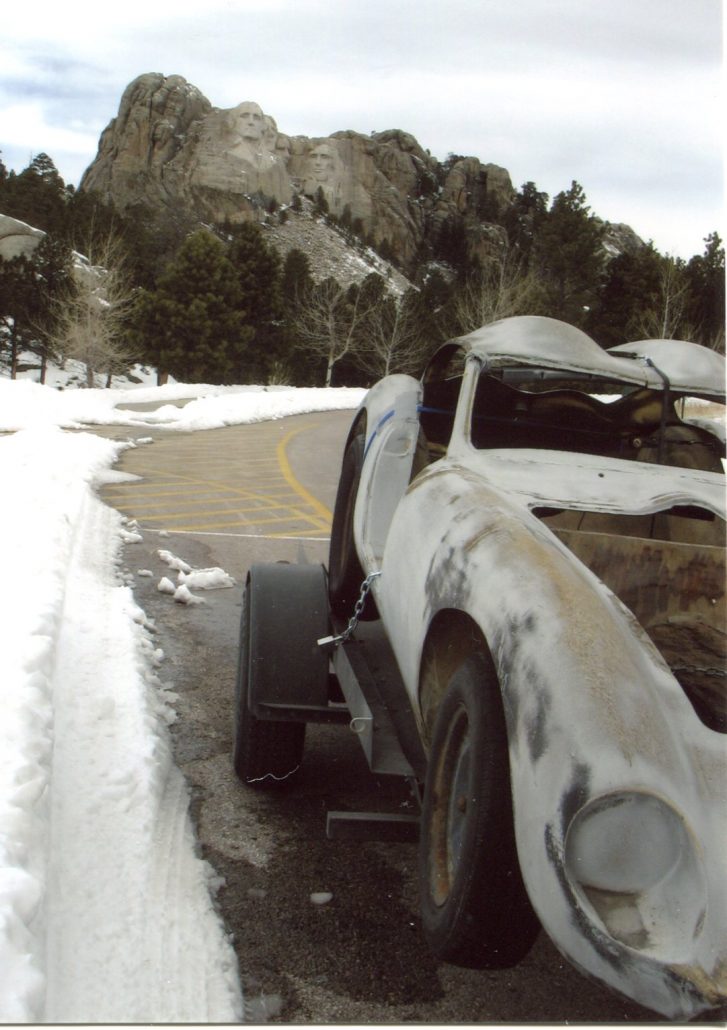 Wednesday, March 2 at noon I was approaching Rapids City, SD. Mt. Rushmore is just 30 or so miles south of the city. I had to visit the great monument as I have never been there. While traveling through Rapids City a driver pulled out in front of me, I slammed on the brakes, didn’t hit the car, I heard a big thump, and saw the J-2 sitting two feet farther forward on the trailer than how I had loaded it. I drove a block further where I could safely look at the damage to the J-2. The car had no damage.