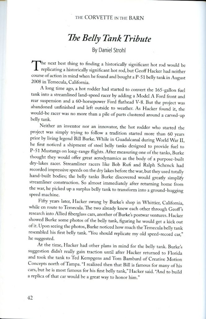 Daniel Strohl From Hemmings Was Kind Enough to “Pen” the Story About the Bill Burke Belly Tank and Its Recreation and Debut in 2009