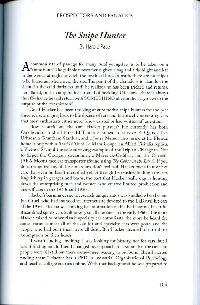 - The Snipe Hunter (how to find old cars) – by Harold Pace