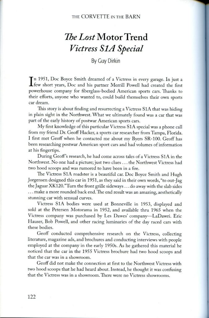 - You’ll Have a Chance to Read Guy Dirkin’s Research, Discovery, Recovery and Restoration of a Historically Important Victress S1A Roadster