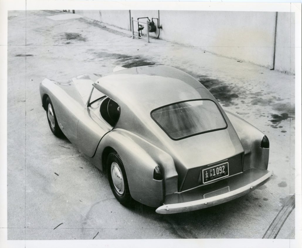 The first Glasspar G2 hardtop appeared on the Alembic I – in early 1952. The Alembic was built at the bequest of Naugatuck Chemicals / U.S. Rubber, and was identical in many features to the original G2 – the Brooks Boxer. It was the second G2 was ever built and had Bill Tritt’s first and only custom hardtop designed for a Glasspar G2 body. In fact, the mold for this hardtop was used time and time again when customers purchased the now rare and often sought out Glasspar G2 hardtop for their custom sports car.