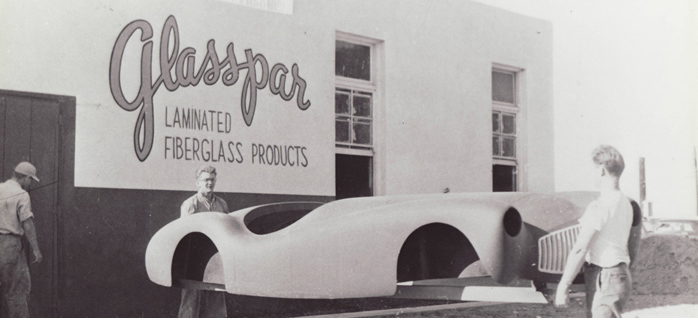 Roger and I became acquainted when I was researching the induction of the Glasspar G2 into the Smithsonian that was coordinated by Jean Poirier, Dale Dutton, Harold Pace and other luminaries of Glasspar history. Roger and I have stayed in touch and recently he called me about an article being written concerning the Corvette – and Glasspar’s specific involvement the General Motors. I hadn’t focused on this aspect specifically yet, so off I went thru magazine articles, interviews, and phone calls to the Tritt family (Matt and Greg), Bert McNomee (US Rubber VP of Public Relations in the 1950’s), Harold Pace, and others.