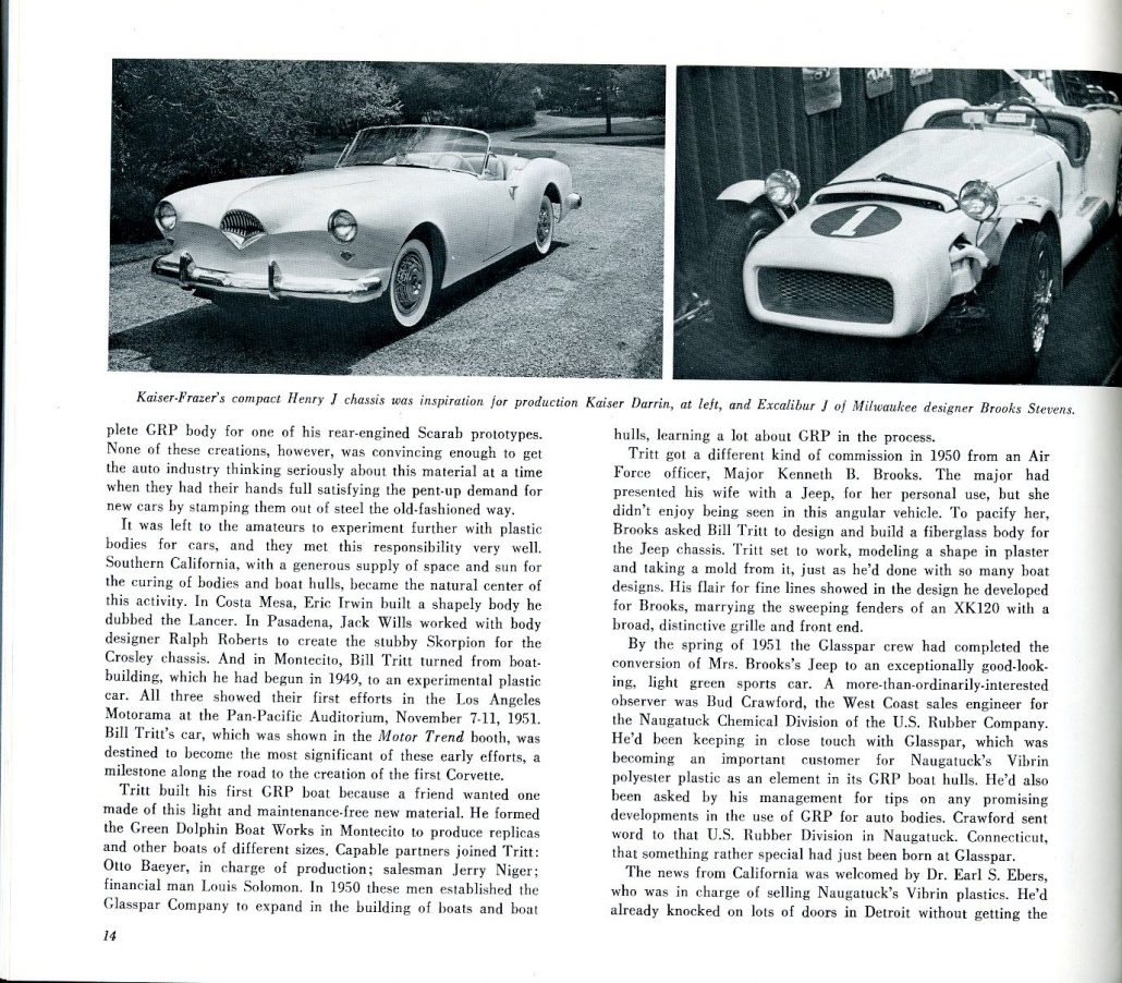 I was pleased to put together a much better understanding of what happened during that time that I can share in our upcoming book, but the best resource I found came from Harold Pace. Harold turned me toward a book written by Karl Ludvigsen about the Corvette in 1978. Karl’s reputation as a researcher is stellar and he has some of the most thoroughly researched books on the market. Harold was true to his word about this being an excellent source, and what I found was the best and most complete history of the build up to Glasspar G2 cars (much has been written with questionable accuracy about Glasspar, but the best and most thorough and accurate history I’ve found is in this book and one by Daniel Spurr called “Heart of Glass”).