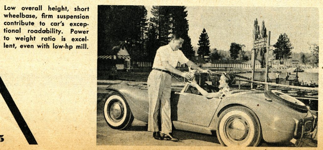 - Caption Here Reads, “Low Overall height, Short Wheelbase, Firm Suspension Contribute to Car’s Exceptional Roadability. Power to Weight Ratio is Excellent, Even With Low Horsepower Mill.”
