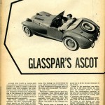 “Anyone who wants a custom-built automobile but does not have the time, patience, or skill to tackle a full-scale plastic body will recognize the possibilities of the Ascot. Built by the Glasspar Company of Santa Ana. California, one of the pioneers in the plastic body field, the Ascot sports distinctive traditional styling and a complete lineup of American-built components.