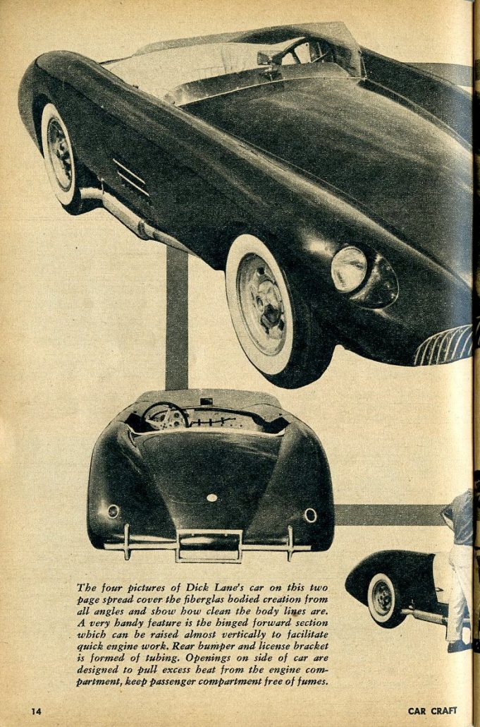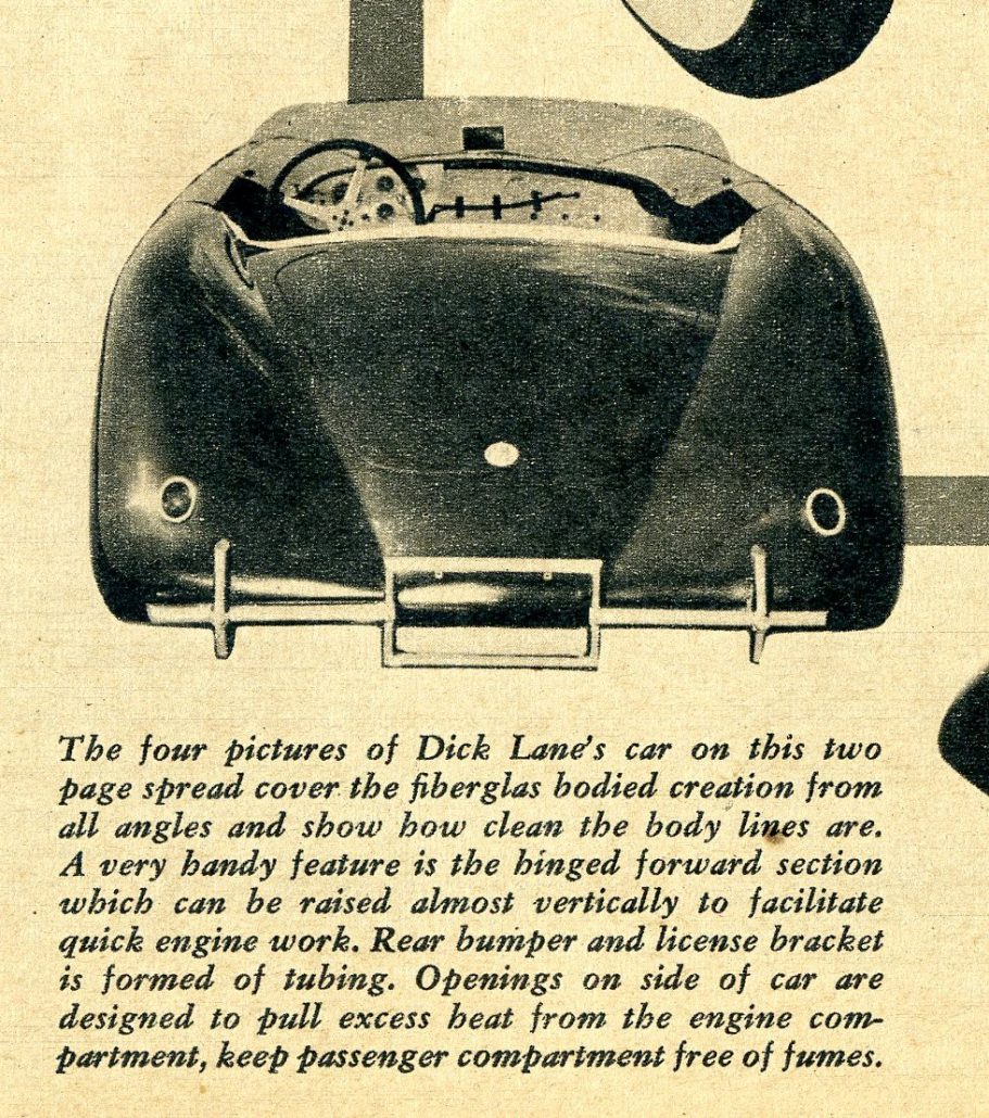 Racing Chassis, Hot Rod Power Plant and Modernistic Styling Make Up Dick Lane’s Fiberglass Sports Roadster