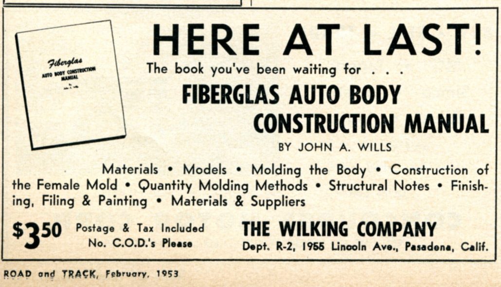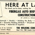 You’ll note that most of the books start in February 1953 and beyond. Fiberglass was becoming a real hot topic in 1952 and it’s not suprising that John Bond of Road and Track released a significant article in January 1953 on “How to Build a Fiberglass Body.” This was on the heels of another seminal article called “Fiberglas” by Jim Potter that appeared in the December 1952 edition of Motor Trend. Both of these articles lit a fire under the industry and no doubt had an impact on the creation of new fiberglass books starting in February 1953.