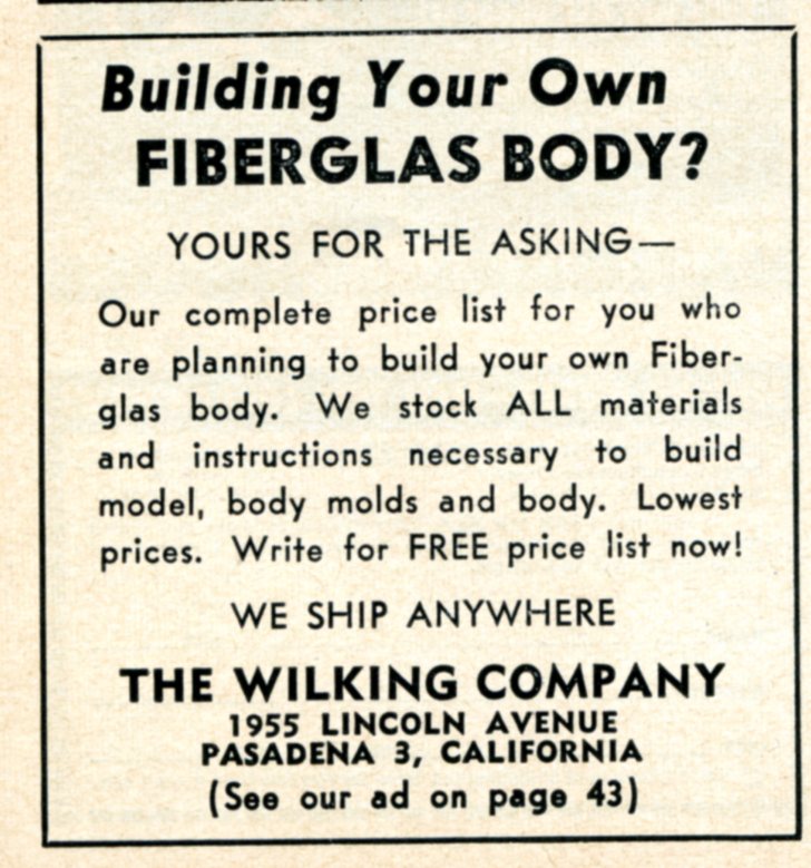 - A Small Ad But A Big Impact. This Ad Appeared in the August 1952 Issue of Auto Speed and Sport. An Interested Person Was Just $1 Away From Building the Car of Their Dreams.