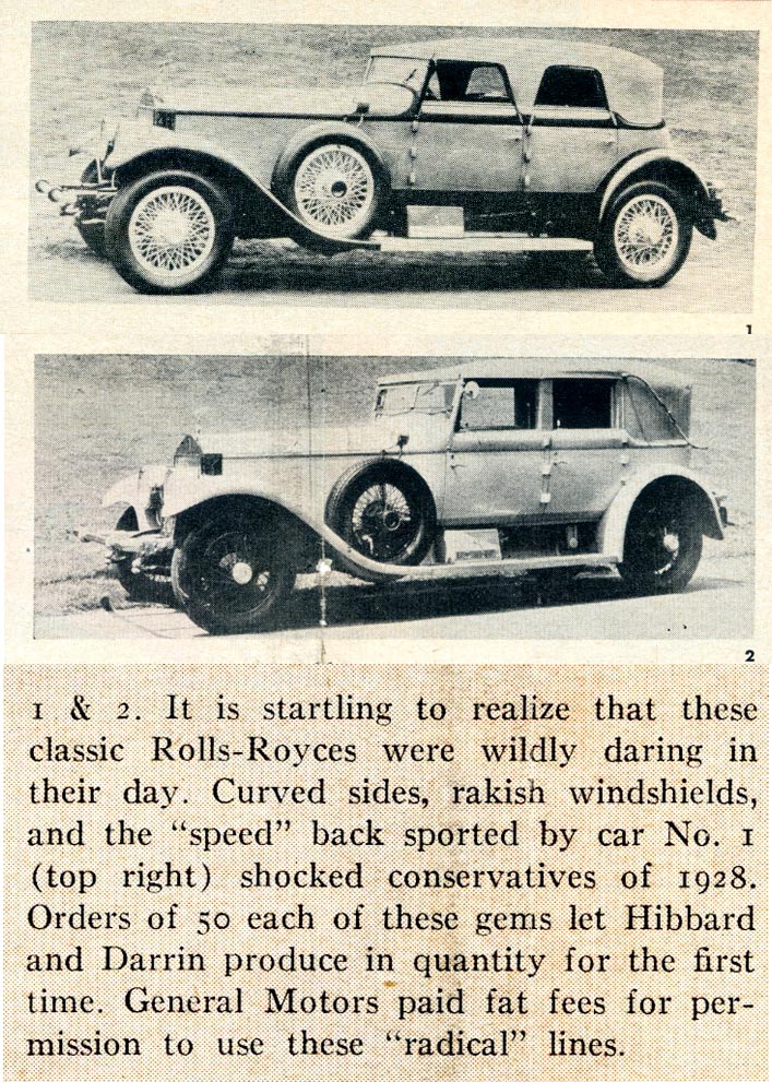They were the first cars that Darrin knows of with rounded sides.  Fifty units of each model were purchased by Rolls-Royce of America–the first large-scale production order the firm had received.