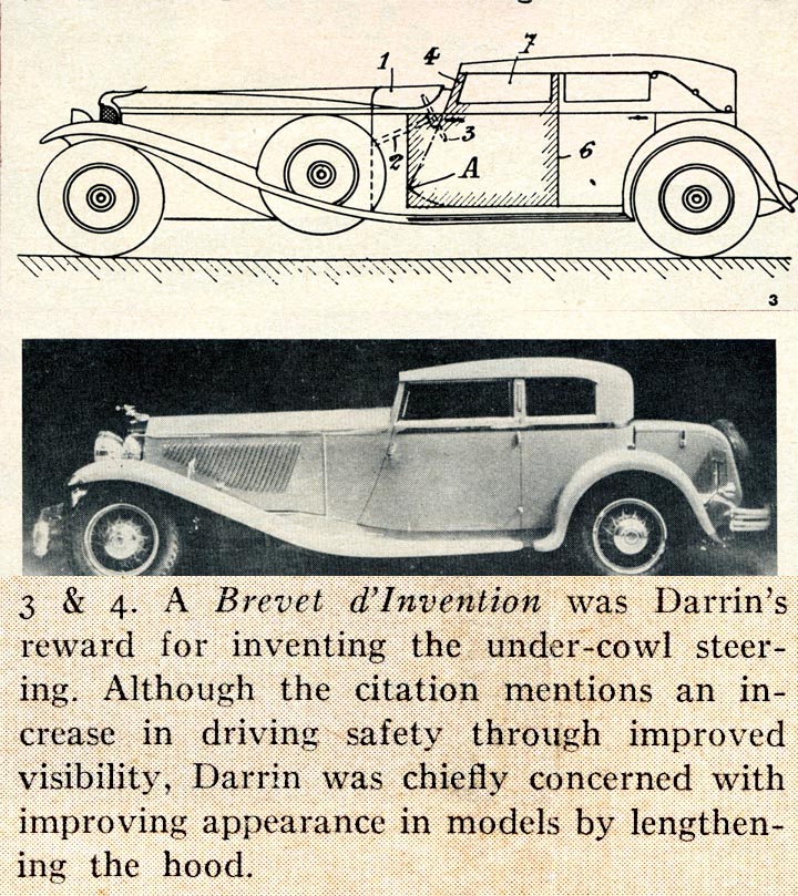 Besides increasing the racy appearance of his sports models, the design improved overall visibility to such an extent that Darrin was awarded the Brevet D’Invention.