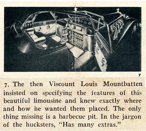 Darrin had become a name with magic in it.  His cars stopped crowds all over the world.  And bold, new ideas still poured off his drawing boards–such as the drophead coupe which he developed and introduced.  In his search for a way to lengthen the hoods of his more “sporty” models, he invented under-the-cowl steering (see page 34, top left photo).