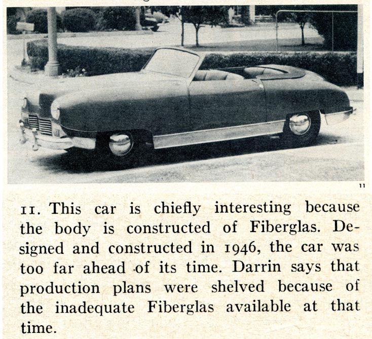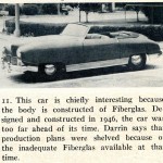 I hope you “Kaiser Darrin” fans will appreciate the detail on Dutch – Motor Trend did a great job on the telling of his history back then, but much happened after 1953 and there’s still more to tell.  Stay tuned at the same “fiberglass” time and the same “fiberglass” channel for more stories on Howard “Dutch” Darrin and his postwar sports car (and fiberglass) designs.