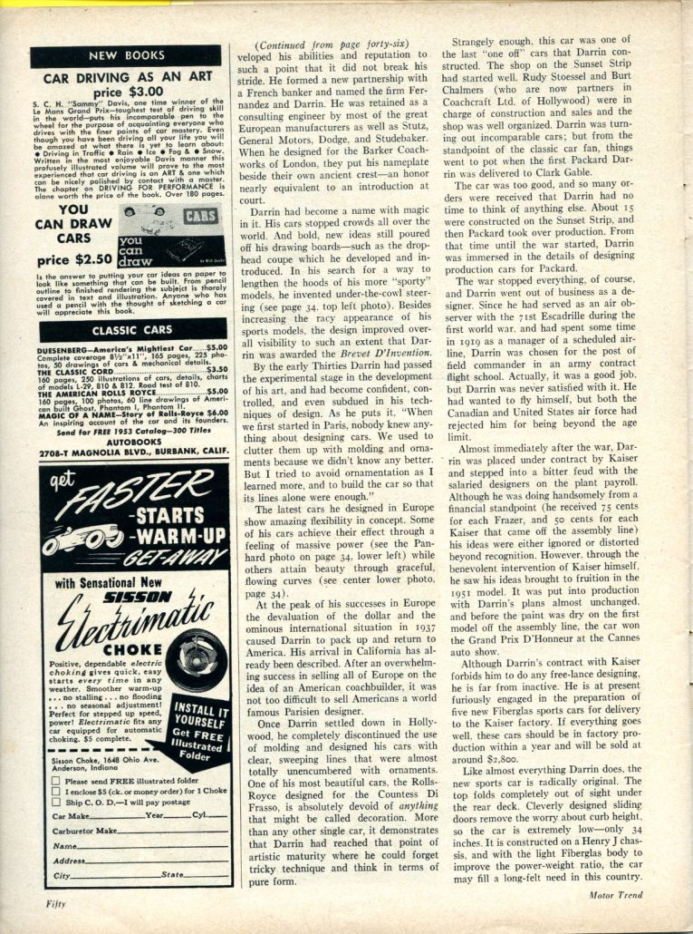 Howard “Dutch” Darrin – King of the Coachbuilders: Motor Trend, February 1953 — 1 Comment