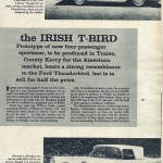 Prototype of new four-passenger sports car, to be produced in Tralee, County Kerry for the American market, bears a strong resemblance to the Ford Thunderbird, but is to sell for half the price.