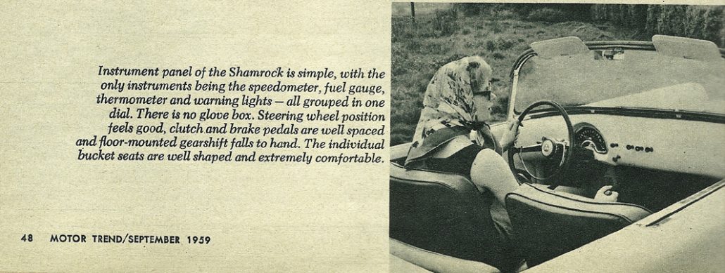 Let’s check out what Motor Trend had to say about the Shamrock back in September 1959.