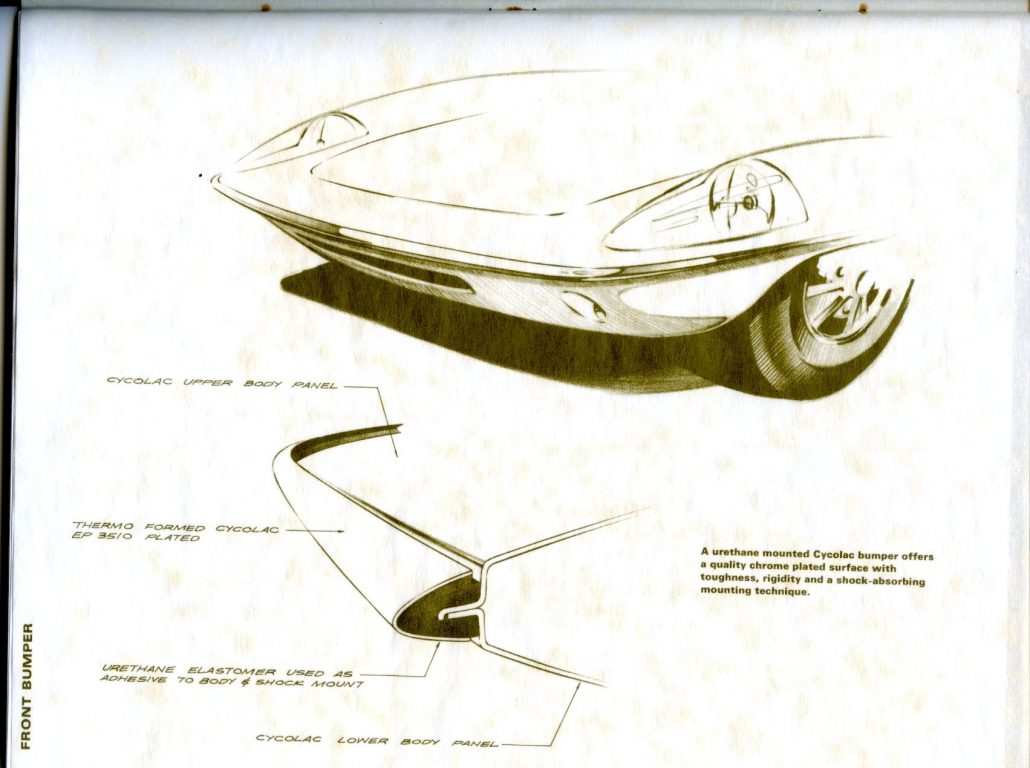 In addition, the Cycolac ABS was employed for chromed trim parts, including the bumpers. Not since the early days of the auto industry has a material been so adaptable to the capabilities of the designer and auto builder.”