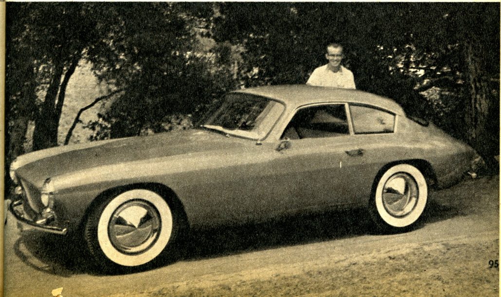 When Jerry Sutton of Manhattan Beach bought the body, however, his prime interest was not its cost but its shape. It fitted a chassis that he had built up out of a wrecked Ford. Twenty-three year old Sutton, a graduate mechanical engineer who has won two Fisher Body Craftsmen’s Guild scholarships for design, didn’t skimp in time, talent, or money when he built up his car.