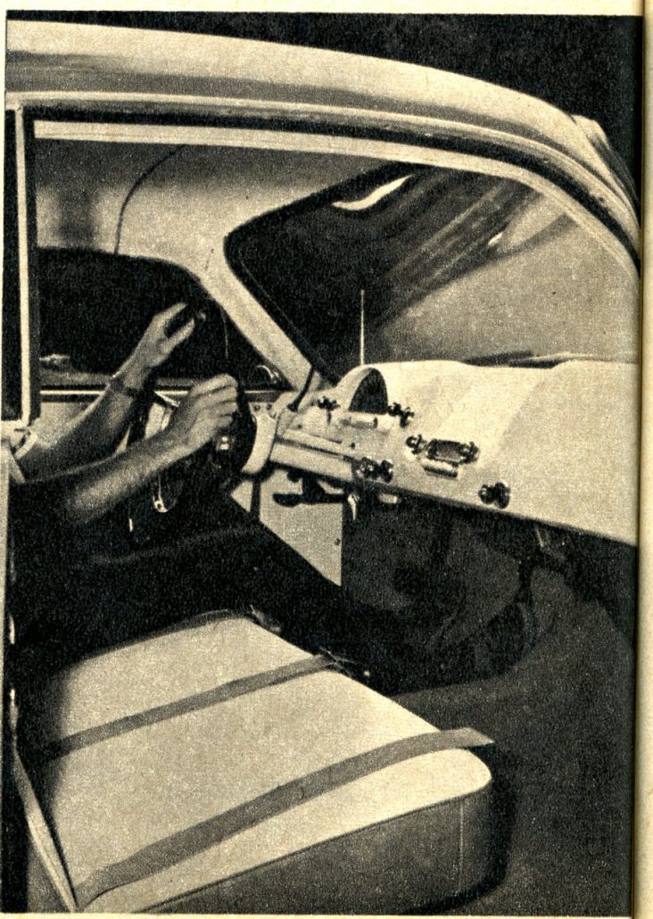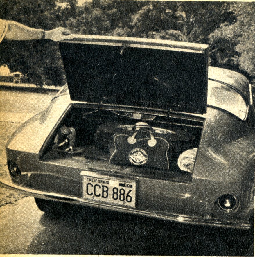 The body was designed by Victress’ Merrill Powell, a graduate in psychology who spent four years working as a medical administrative officer in the USAF and who eventually decided to get out of “wig-straightening” as a profession. He really got way out! After just one semester at Art Center School, he was earning his living exploiting what is obviously a tremendous native talent for design.