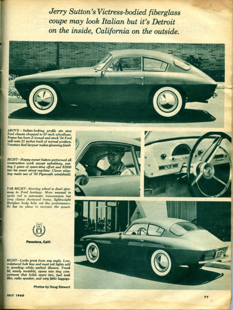 “Jerry Sutton’s Victress-bodied fiberglass coupe may look Italian but it’s Detroit on the inside, California on the outside”