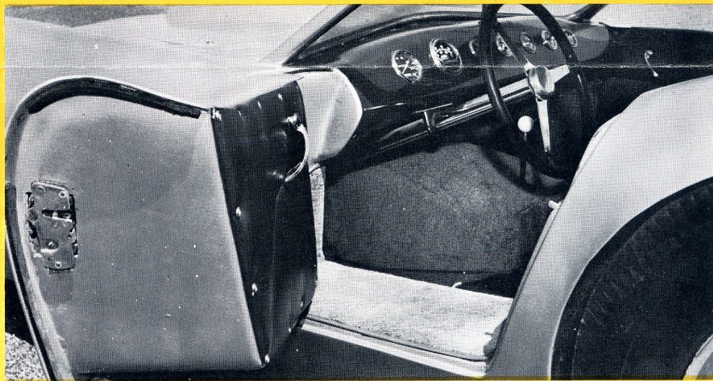 Headlight receptacles….hood scoop….dash board….door jambs…floor pans….and drive-shaft tunnel are built right in. The J-4 Gran Tourismo body (or complete sports car, if desired) is recommended for the discriminating sports car owner who plans to do more than race.