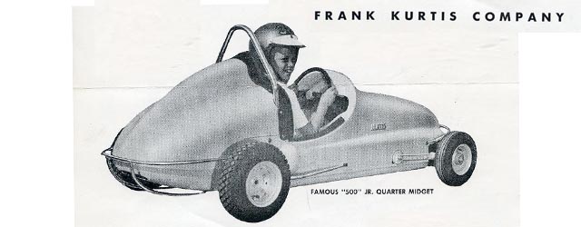 “The Frank Kurtis Company, world’s largest builder of professional racing cars for over 25 years, maintains leadership through genuine performance – speed with safety – engineered designs – quality construction – dollar value – first throughout the years with all types of engines and racing.  Kurtis Kraft cars have dominated Indianapolis, Midget, Half and Quarter Midget events with consistent “firsts”; now a new Indianapolis factory insures superior Eastern service.  Don’t experiment with unknowns – it takes a Kurtis to beat a Kurtis. Dealers, Kurtis sales agents, racers – get that “Kurtis Kraft out front look” now!!!”