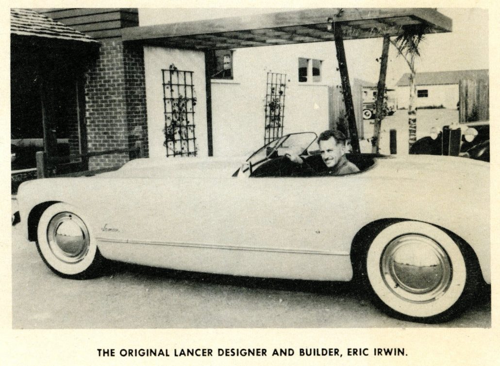 Take, for instance, Eric Irwin’s Lancer. Irwin’s company was producing bodies from 1951 thru 1956 at which time Eric moved to the Seattle, Washington area. During that time his company produced approximately 6 complete sports cars and 6 bodies.