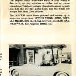 Three styles of Lancers are shown in this brochure – one of them is Irwin’s 1951 Motorama car – still missing to this day. A fourth Lancer style – not shown in this brochure – was produced and pictures of it were obtained from Eric Irwin’s nephew – Brian Jennings. Happily, this car does still exist bringing the number of Lancers that have been found to “two” with “ten” still unaccounted for at this time.