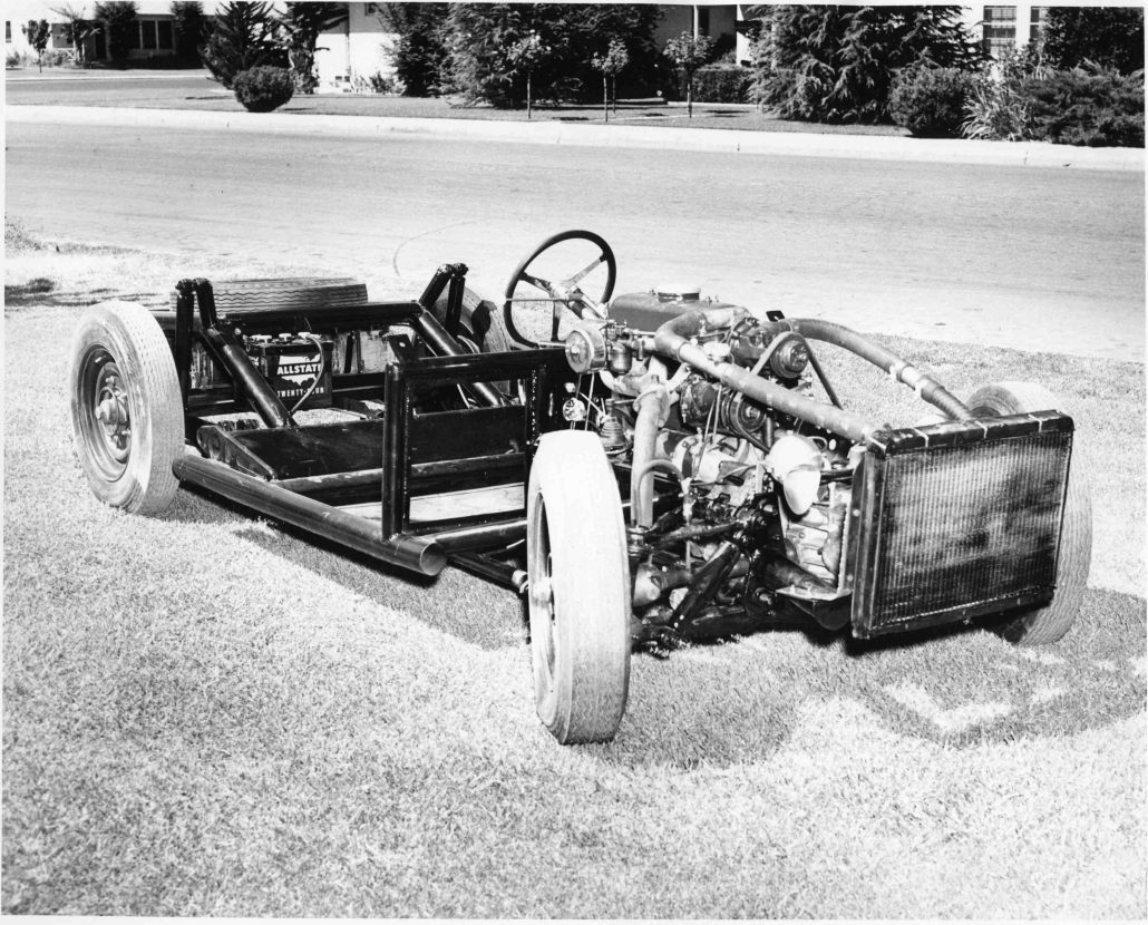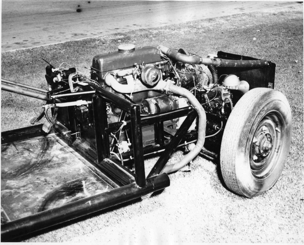 For the drive train, I picked the Citroen. There were several reasons for this choice. It is a lightly stressed engine with plenty of low speed torque for a light car. The engine and drive components were readily available. It is dependable and spare parts are available. When I saw the Allied Fiberglass Coupe at the (Petersen) Motorama, I knew I had the body I needed. Until that time, I had been planning a rear engine car.