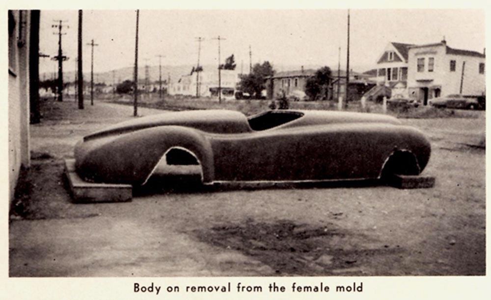 The largest fiberglas-plastic sports car body yet constructed, according to the manufacturers, was produced recently by the Industrial Plastics Service at 4425 Linden Street, Oakland, California. It was constructed of Astrolite liquid plastics, specially formulated by Industrial Plastics Service, and reinforced by Fiberglas supplied by Owens-Corning Fiberglas Corporation, and was built especially for Maverick Motors. This type body will become standard equipment on the new Maverick Sports Car.