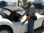 The car remained unchanged through 1989 when John decided to upgrade the components of the car with a newer drivetrain and wheels. Apart from that, the rest of the car remained the same. John kept the car through about 2007 and it eventually ended up in the hands of Glasspar enthusiast Robert Lugo, of Phoenix Arizona. Robert drives the car frequently, and pictures of him and his G2 appear below.