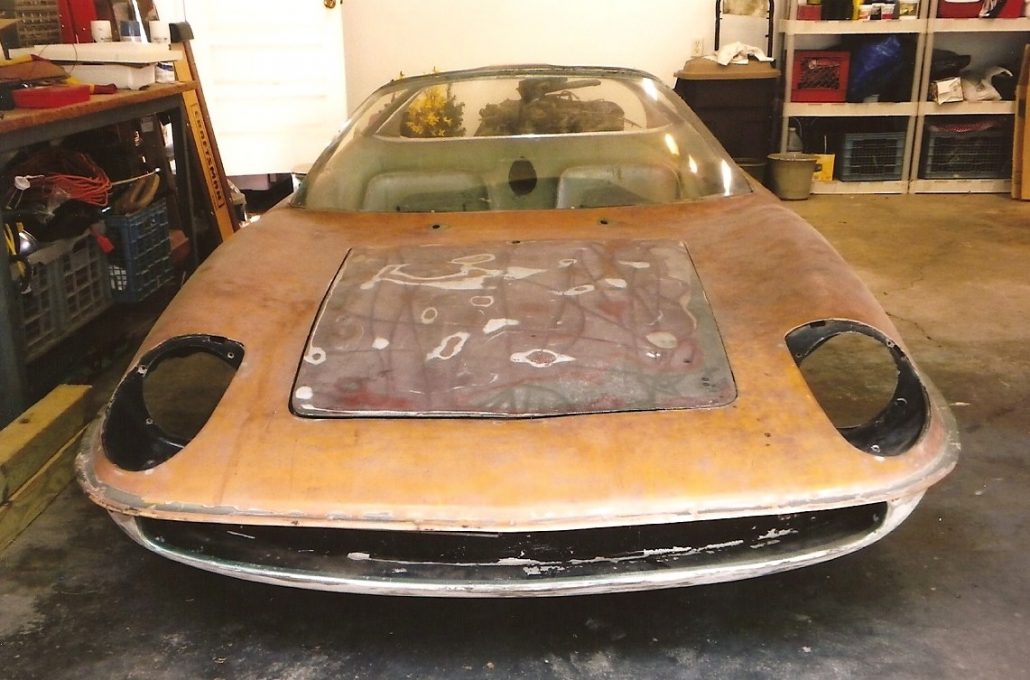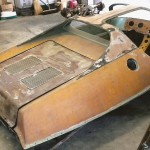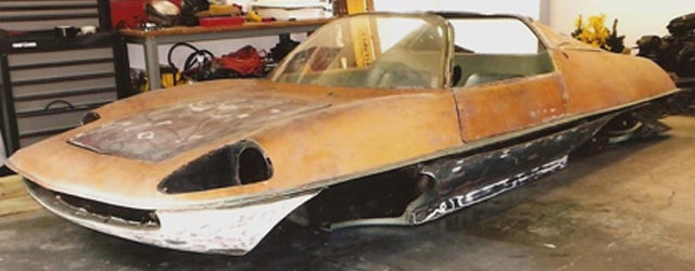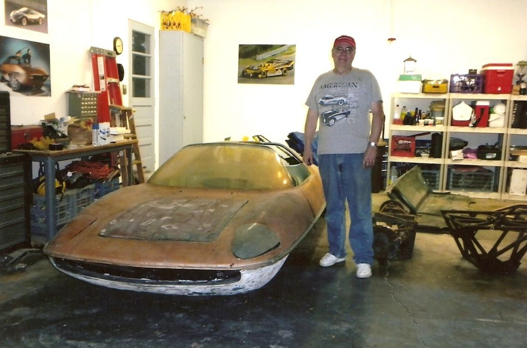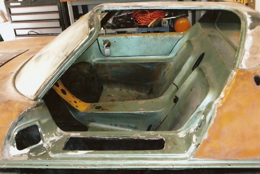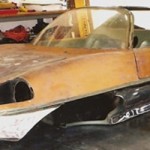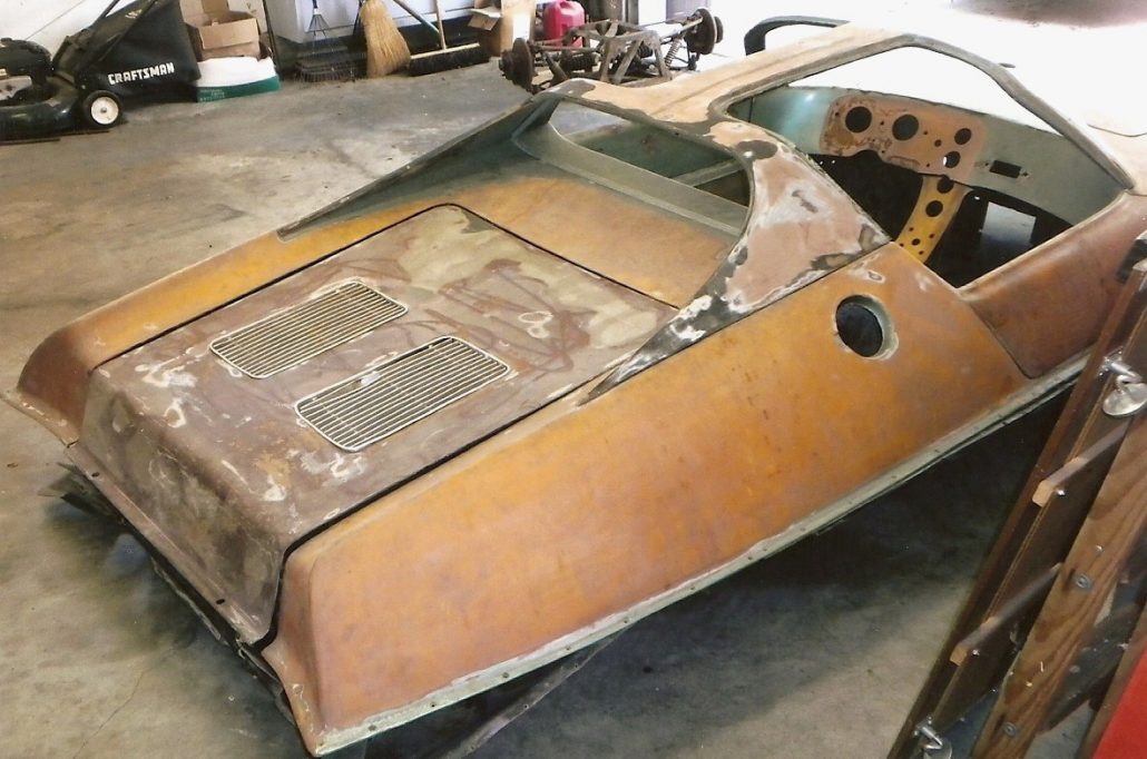 “The car I acquired is a basket case that has languished in a large building in Ft. Wayne Indiana for many years. The fiberglass chassis tub that supports the front and rear suspension has been cut up and will require replacement, either with an original unit, tubular space frame, or shortened VW chassis.”