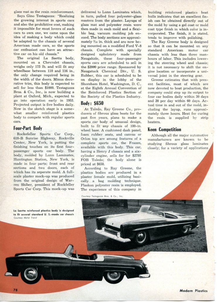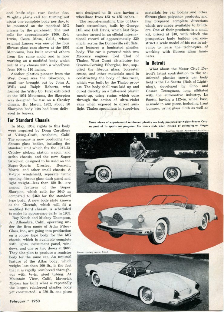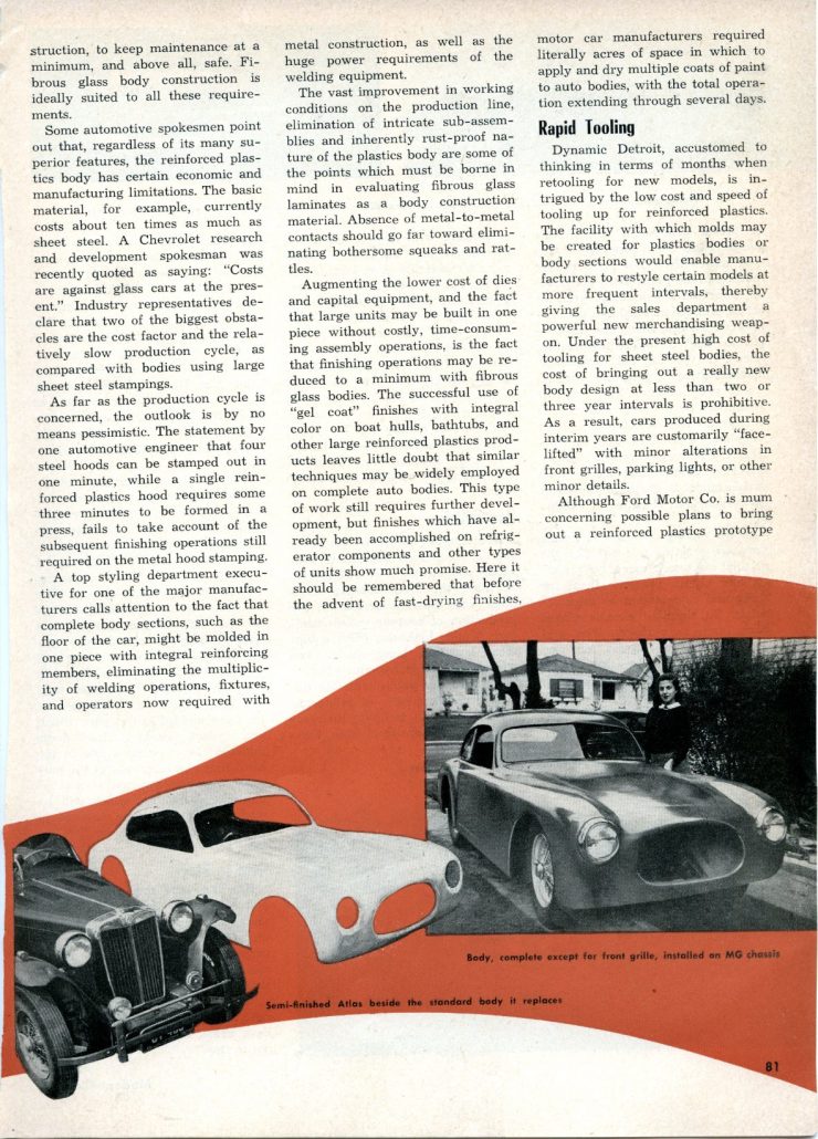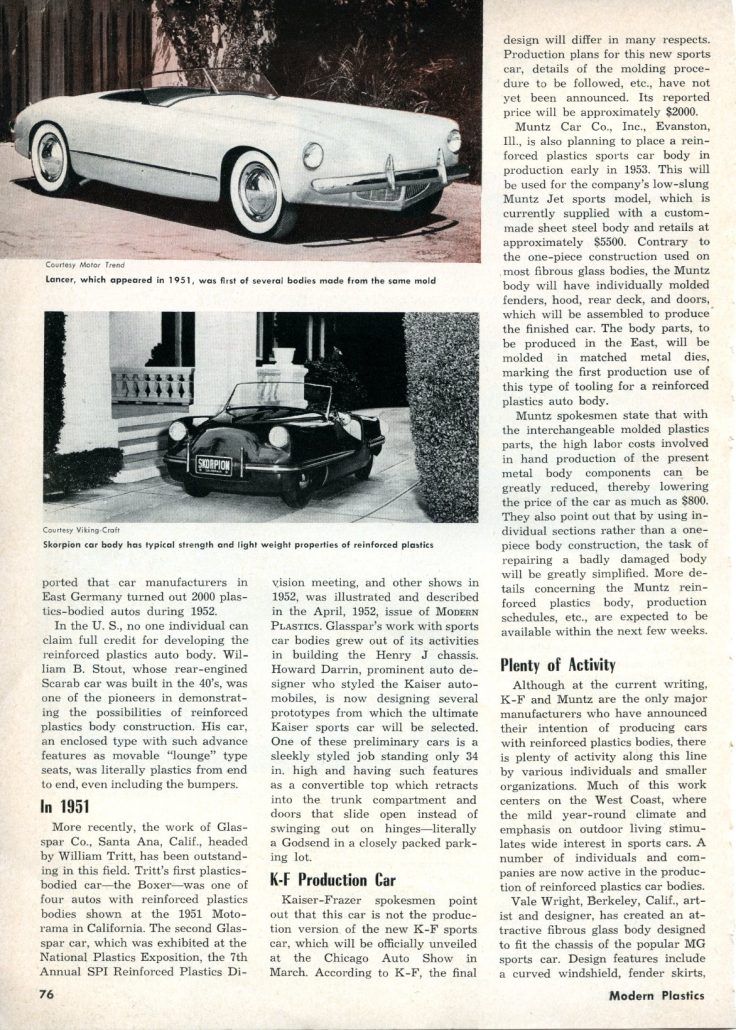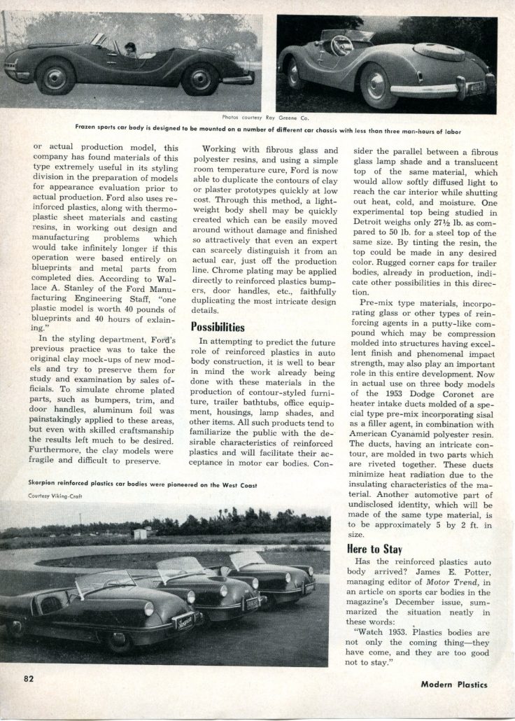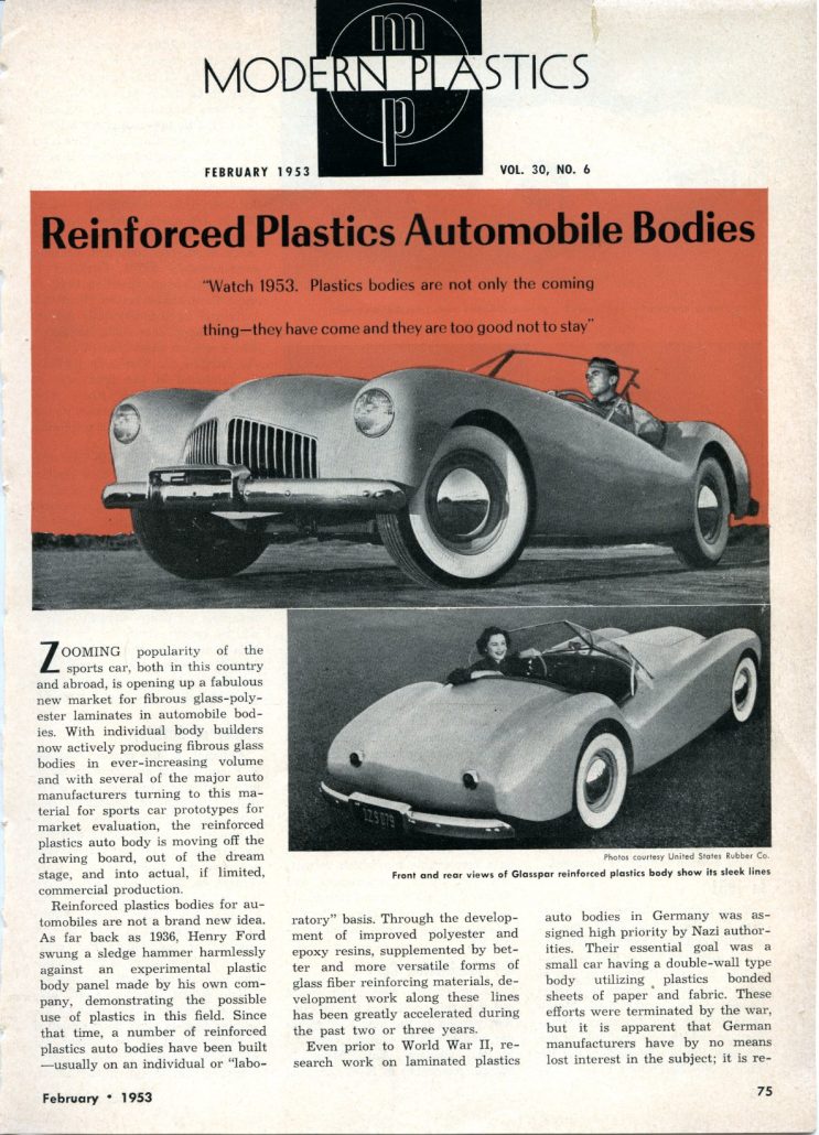 That’s what Jim Potter, managing editor of Motor Trend wrote in December 1952 – and he was exactly right. And the article in our story today from “Modern Plastics” proves Jim Potter’s point in February 1953.