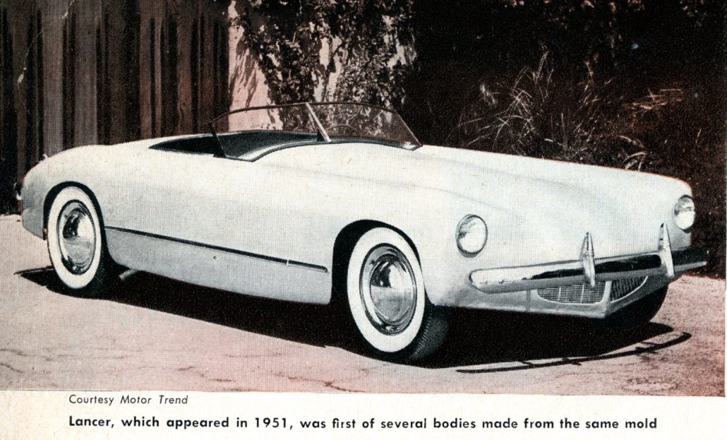 - The 1951 “Lancer” by Eric Irwin. It Debuted at the 1951 Petersen Motorama at the Pan Pacific Auditorium With the Glasspar G2, and the Wasp and Skorpion