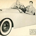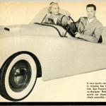 Going thru the magazine archives last night, I uncovered a bit more detail on the fiberglass sports car built and sold by Kjell Qvale. It was a nice photo – one we’ve seen before – but a bit more information concerning the co-designer of the car, weight, and price.
