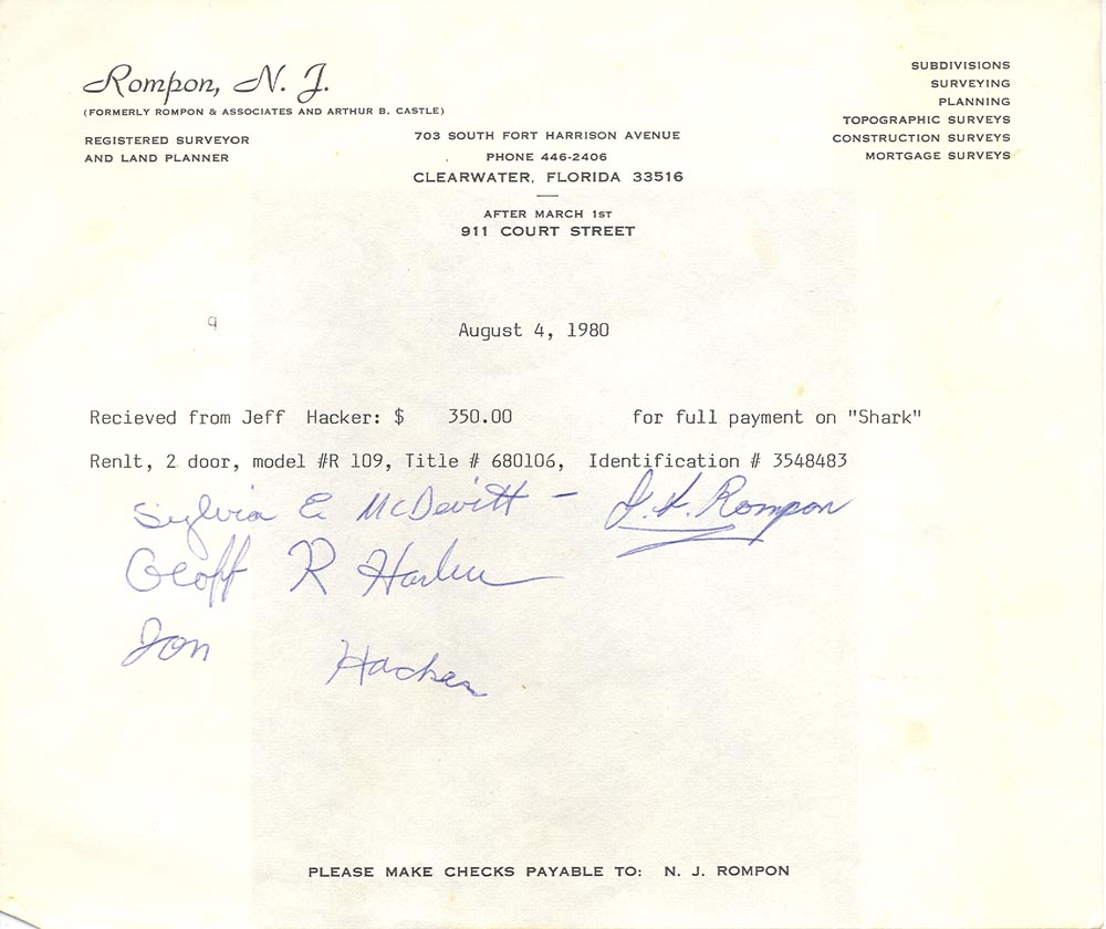 - Here’s The Bill of Sale Signed By All Involved – Even My 11 Year Old Brother Who Came Along To Help Pick Up The Shark.